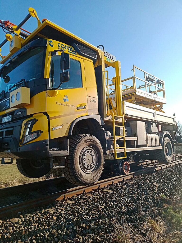 Eine der wichtigsten Maschinen ist das Colmar T10000FSC-Zweiwegefahrzeug, der für schwere Arbeiten bei der Installation von Oberleitung-Stützwerken eingesetzt wird und derzeit das einzige Gerät seiner Art in Polen ist.