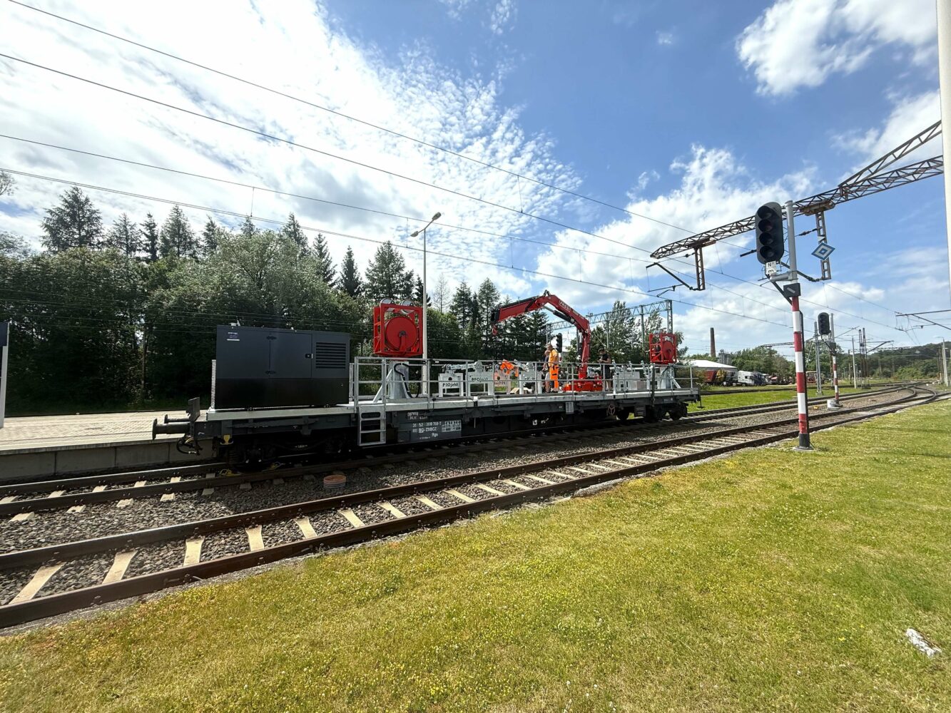 Dank unserer Ausrüstung sind wir in der Lage, spezialisierte, umfassende Bauleistungen im Bereich des Bahnstromnetzes durchzuführen. Wir investieren kontinuierlich in neue Maschinen und Anlagen auf dem neuesten Stand der Technik.