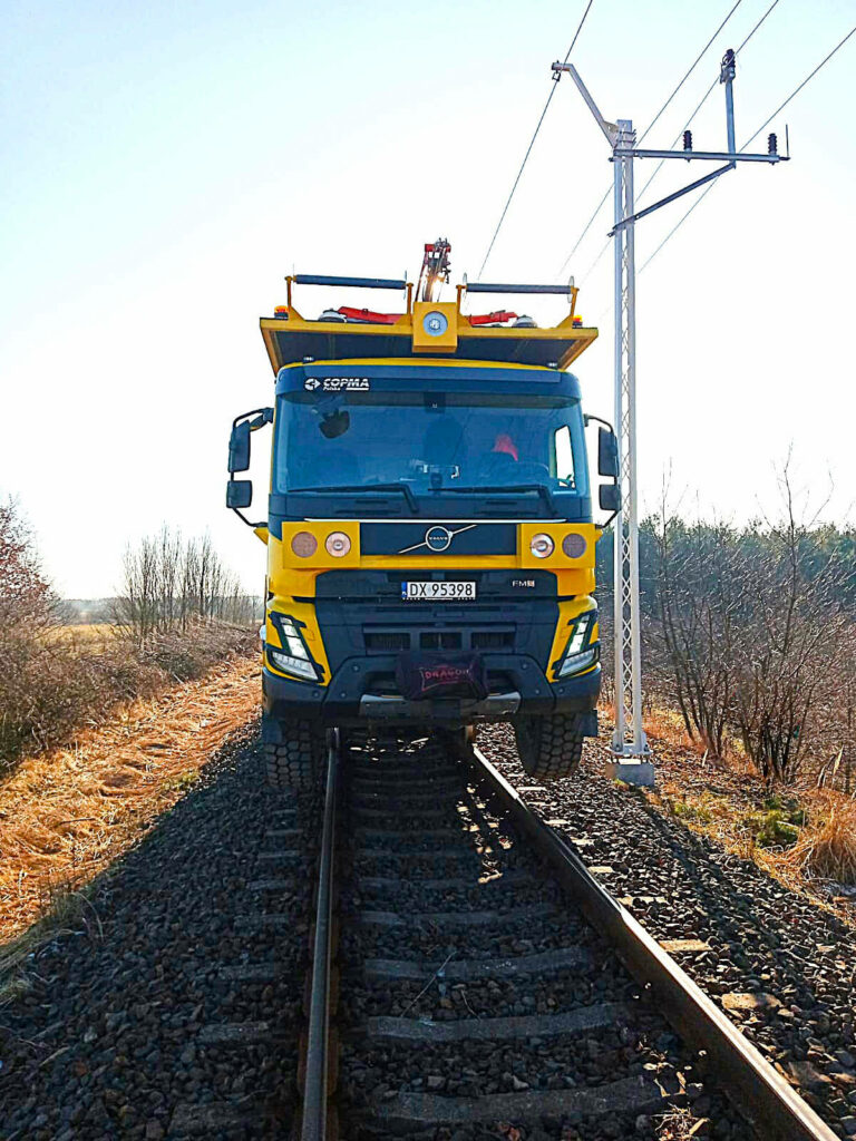 One of the most important equipment units is the Colmar T10000FSC road-rail crane used for heavy work on the installation of overhead line support structures, which is currently the only machine of its kind on our market.